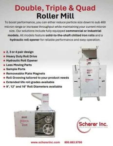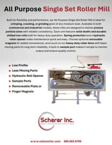 Scherer’s roller mills produce a consistent grind, which is critical for all industries!